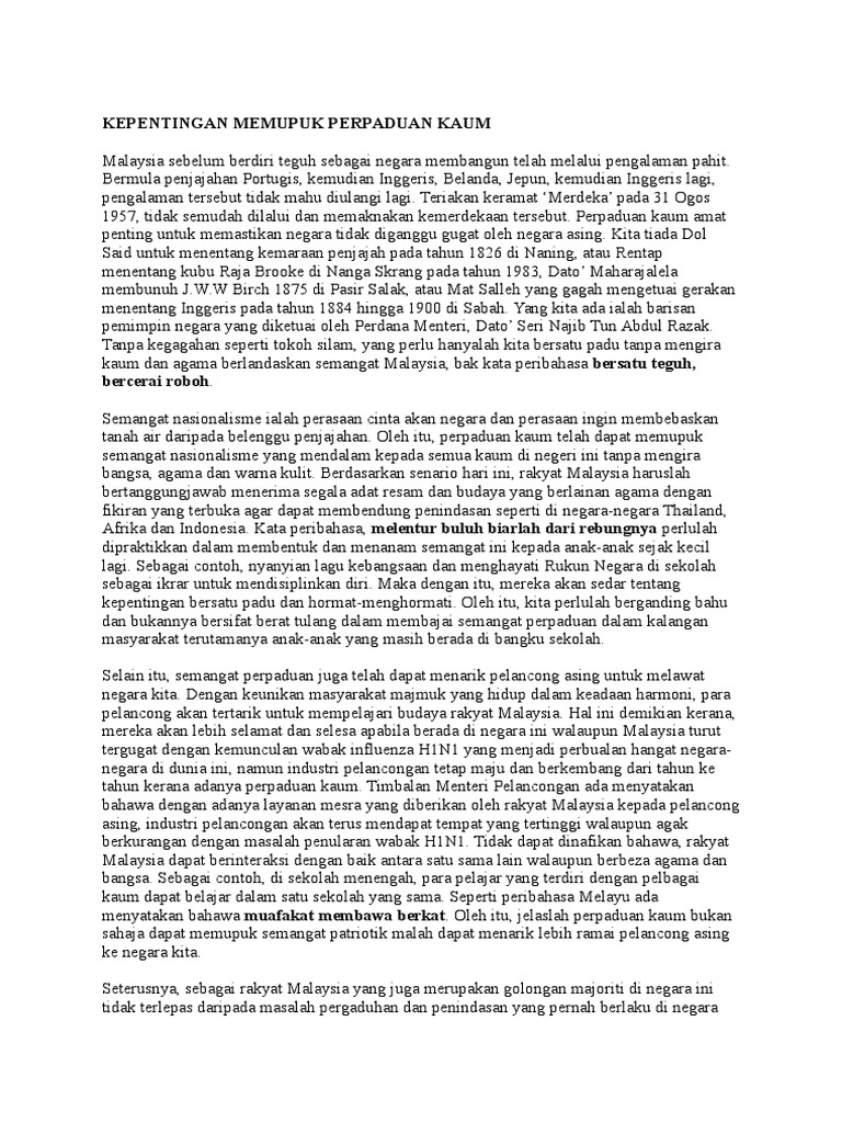 Kepentingan Semangat Perpaduan Kaum Pdf